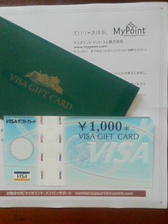 「マイポイント(懸賞サイト)」からギフトカードが届きました~♪